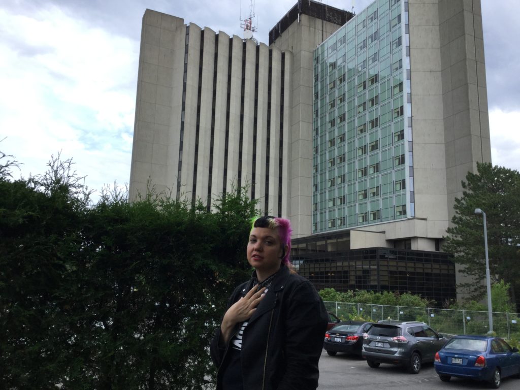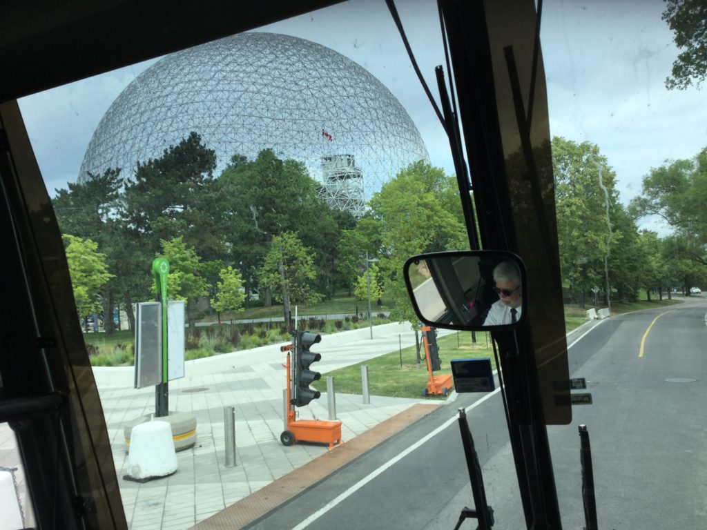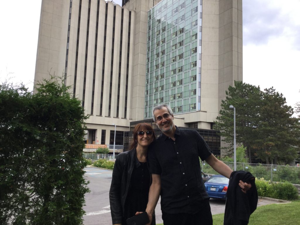 In conjunction with the Fantasia International Film Festival, film writer/producer/programmer Kier-La Janisse mounted her second Horror Express chartered bus tour, this time through Montreal horror film locations – co-hosted by longtime horror journalist Mike Gingold and presented by the Miskatonic Institute of Horror Studies and Spectacular Optical Publications. Stops included the houses from Of Unknown Origin and Cathy’s Curse, ‘Crawford Academy’ from Happy Birthday to Me, Starliner Towers from Shivers, the building where Karen Black plummets to her death at the beginning of The Pyx, brutalist landmark Habitat 67 from The Disappearance, the Consec Building from Scanners, the hospital from Visiting Hours, the antique shop from Le Diable est parmi nous and the Guaranteed Milk Co. milk bottle from Sweet Movie. Plus we got to drive by the Buckminster Fuller-designed Biosphere, as seen in Robert Altman’s Quintet, as well as the Seigneurs bridge from George Mihalka’s The Blue Man, and even got a peek at amusement park La Ronde, a location from Mihalka’s decidedly non-horror sex comedy Pinball Summer.