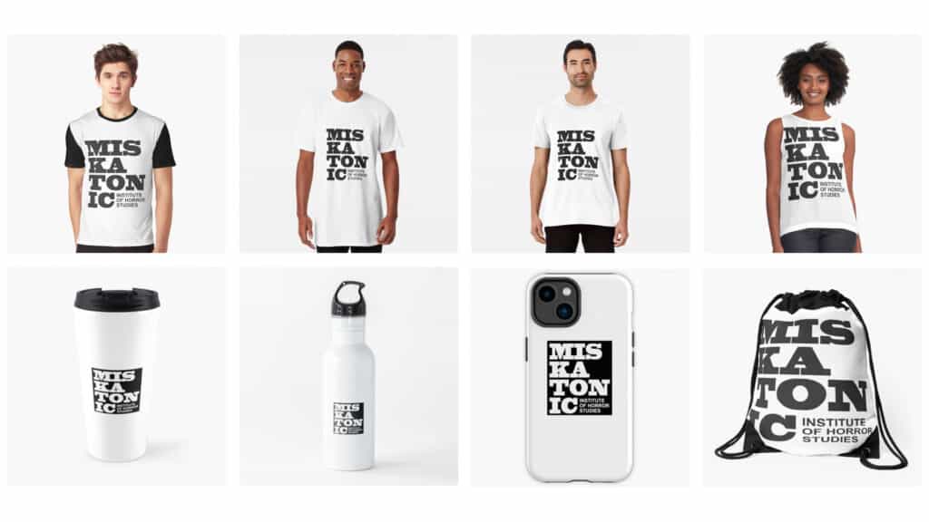 Just in time for the holidays, the perfect gift for yourself or the horror institute lover in your life. Get the Miskatonic Institute logo on mugs, t-shirts, tote bags, pillows, iphone cases, buttons, ipad cases, shower curtains, or just buy some stickers to remind you of us wherever you want!